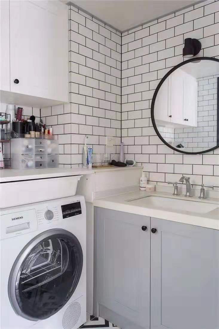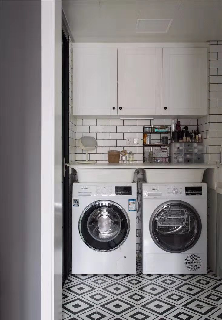 將洗衣機和烘干機位置設計在收納柜下,使空間得到充分的利用。