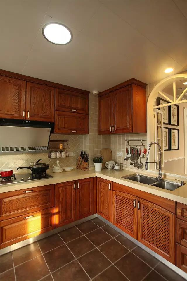 打造一個實用的廚房,最重要的就是把灶臺、洗手臺和操作臺的位置設計好,操作臺位于中間、水槽和灶臺離的不遠是最好的。