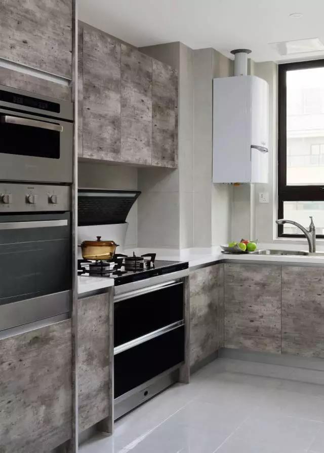 或者你更喜歡復古風、工業風的設計,也可以考慮做舊處理的木色、水泥色、紅磚墻等這樣比較特殊的設計,同樣可以讓廚房變得很酷、很帥氣。